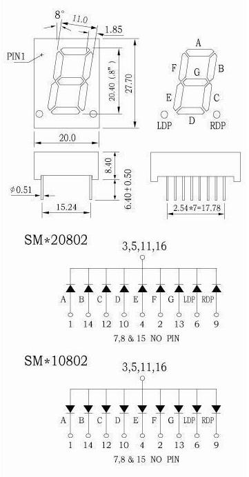 - 描述:1位共陽0.8英寸