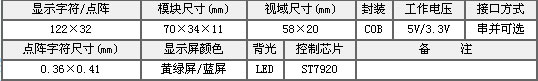 - 名稱:OCMJ12232C-3 白光黃屏3.3V