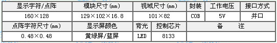 描述:顯示點陣:160X128 品牌:金鵬 帶中文字庫,模塊尺寸:129X102X17 視域尺寸:101X82 控制IC:8133,封裝COB 本液晶詳細資料在內(nèi)頁