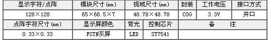 - 描述:顯示點(diǎn)陣:128X128,品牌:金鵬 灰屏,模塊尺寸:65X66.5X7 視域尺寸:48.78X48.78 控制IC:ST7541,封裝COG 串口 本液晶詳細(xì)資料在內(nèi)頁