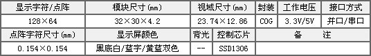 - 描述:顯示點(diǎn)陣:128X64,品牌:金鵬 ,模塊尺寸:32X30X4.2 視域尺寸:23.74X12.86 控制IC:SSD1306 封裝COG 串口/并口,工作電壓3.3V(2.7-3.5),工作溫度-40至70