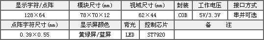 - 描述:品牌:金鵬 帶中文字庫(kù),模塊尺寸:78X70X12.5 視域尺寸:62X44 控制IC:7920