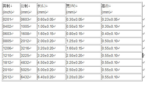 貼片電阻電容常見封裝有9種(電容指無級貼片),有英制和公制兩種表示方式。英制表示方法是采用4位數(shù)字表示的EIA(美國電子工業(yè)協(xié)會)代碼,前兩位表示電阻或電容長度,后兩位表示寬度,以英寸為單位。我們常說的0805封裝就是指英制代碼。實際上公制很少用到,公制代碼也由4位數(shù)字表示,其單位為毫米,與英制類似。